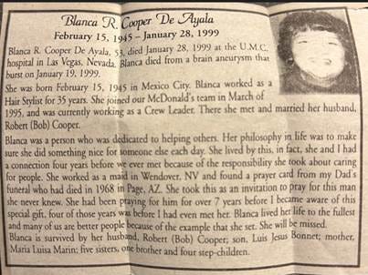 The article below was written by the manager of McDonald’s in Mesquite, shortly after Blanca’s passing. This is another example of the profound and loving impact she had on many lives while living in the United States.